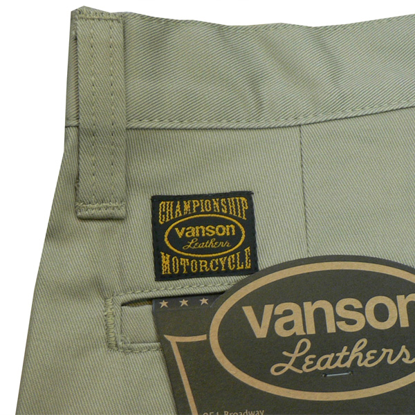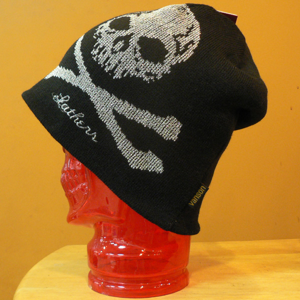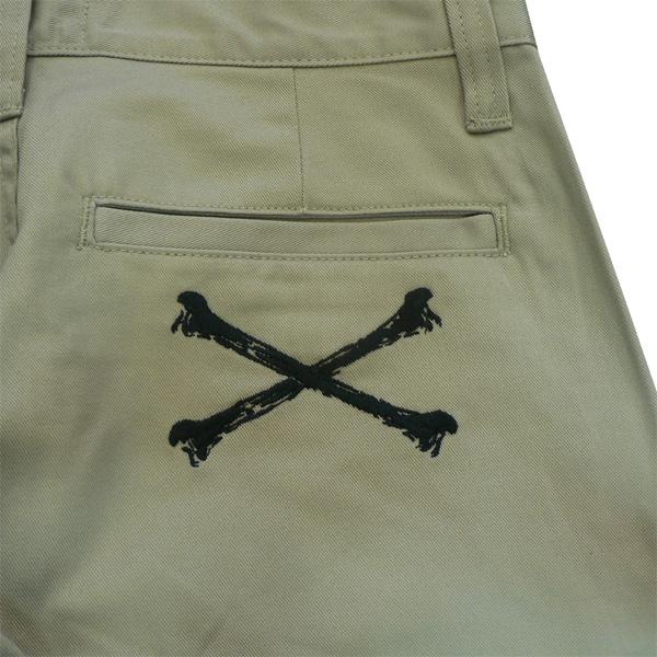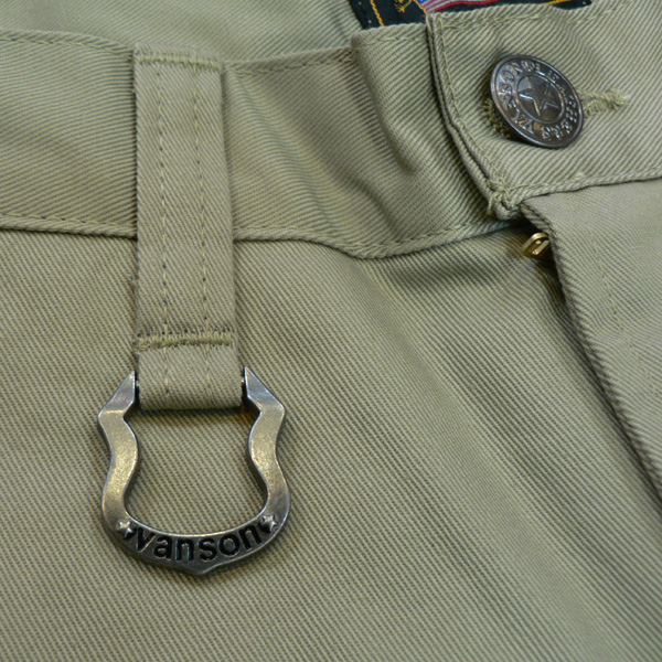 股上がやや浅めのストレート。フロントとバックにワンポイントでボーン刺繍が入ります。Vansonオリジナルカンにはベルトチェーンをつけたりとポイントになっています。