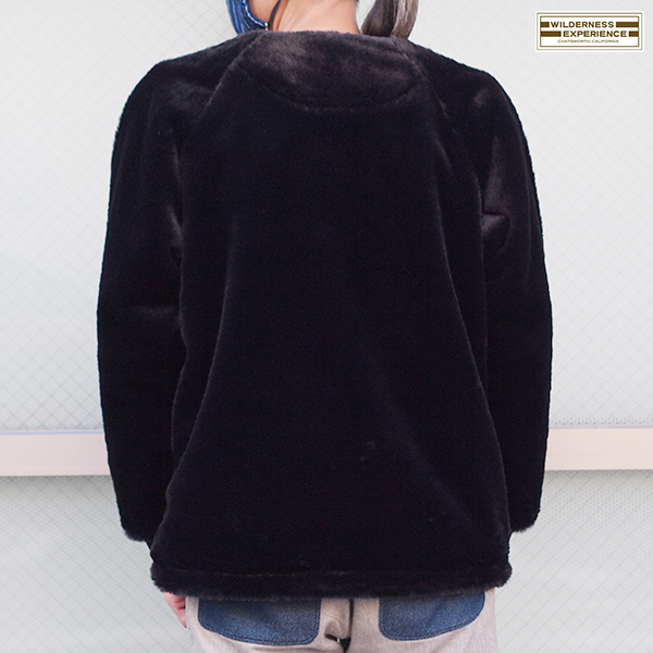 保温性抜群のフェイクファー素材を採用したノーカラーブルゾンです。