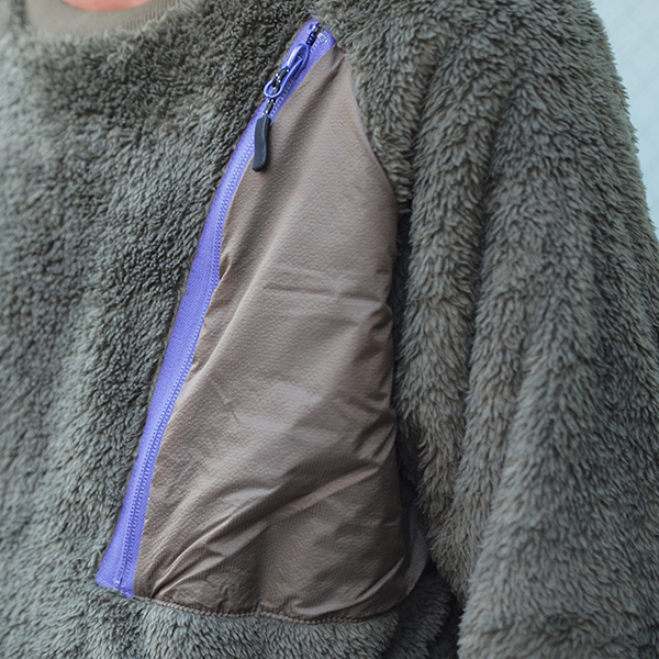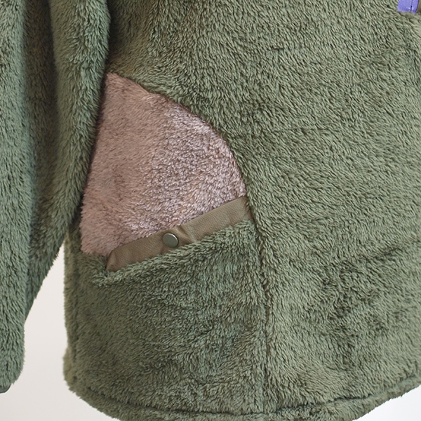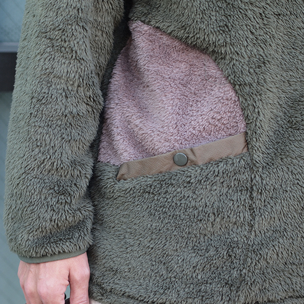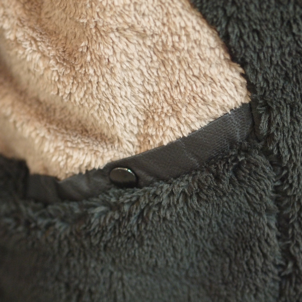 素材は保温性抜群のボアフリース生地で、軽くて暖かい、寒い時期には最適の素材です。