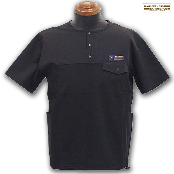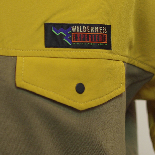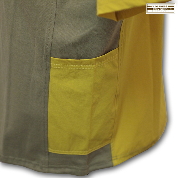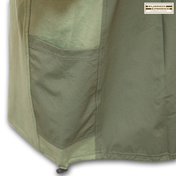 胸とサイドのポケットと、生地の切替がアクセントになった一着です。