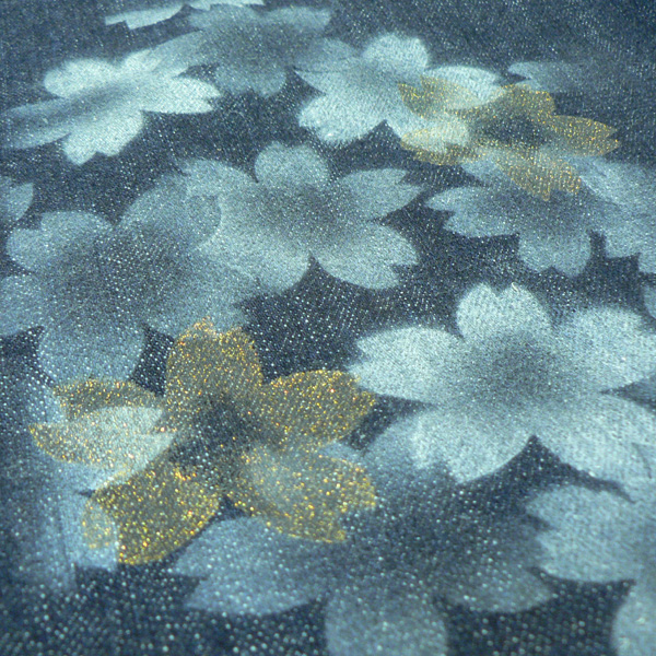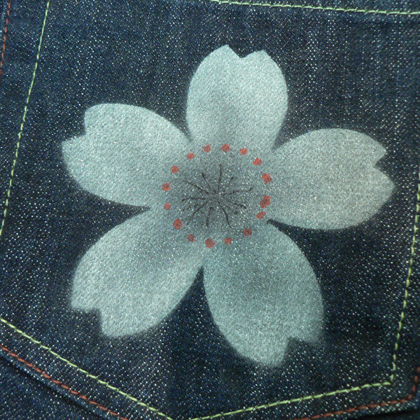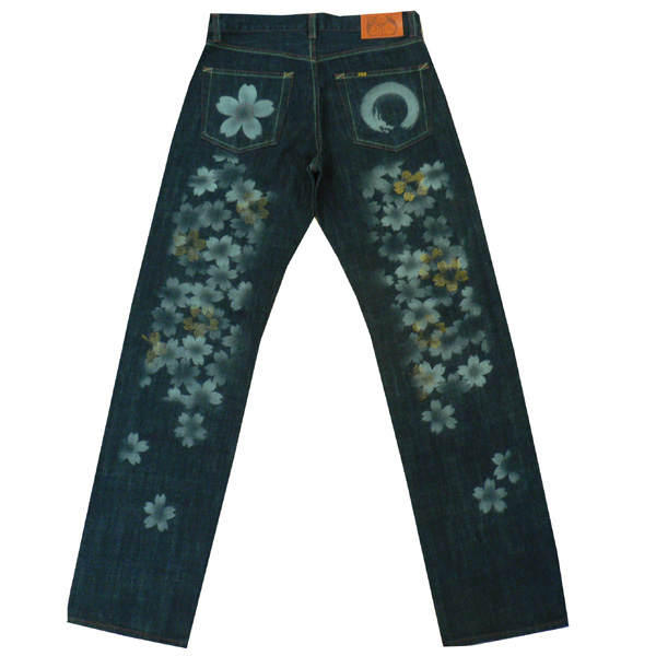 伝統工芸士による、型絵染めしたジーンズ、初のリリースです。フロントはシンプルに、バックは大胆にぼかし櫻をちりばめたデザインで、幾重にも重なった櫻が幻想的です。そのなかにアクセントとして金の櫻がまた全体を引き締めています。